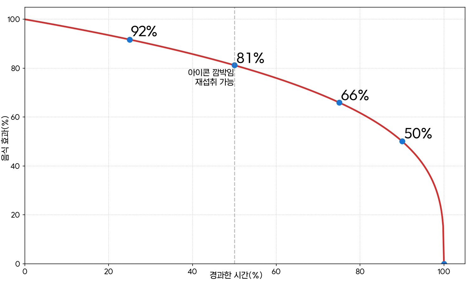 다만 음식의 버프 효과는 영구적이지 않으며 시간이 흐를수록 늘어났던 능력치가 서서히 줄어든다. 음식 지속 시간의 절반이 지나면 아이콘이 깜박이며 다시 음식을 먹어 효과를 갱신할 수 있는 상태가 된다. 또한 음식은 전투 중 입은 피해를 빠르게 복구하는 데 필수적인 '틱당 HP 회복(HP/Tick)'에도 깊이 관여하므로, 모험의 성격에 맞춰 전략적으로 식단을 구성하는 것이 생존의 지름길이다.